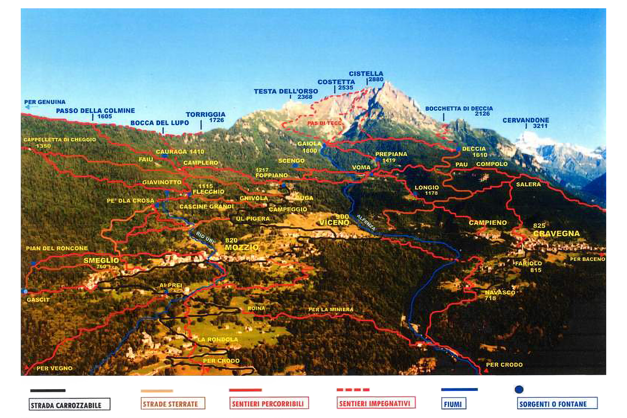 you will find this map, which provides all the routes and roads you can take in the vicinity of Mozzio.