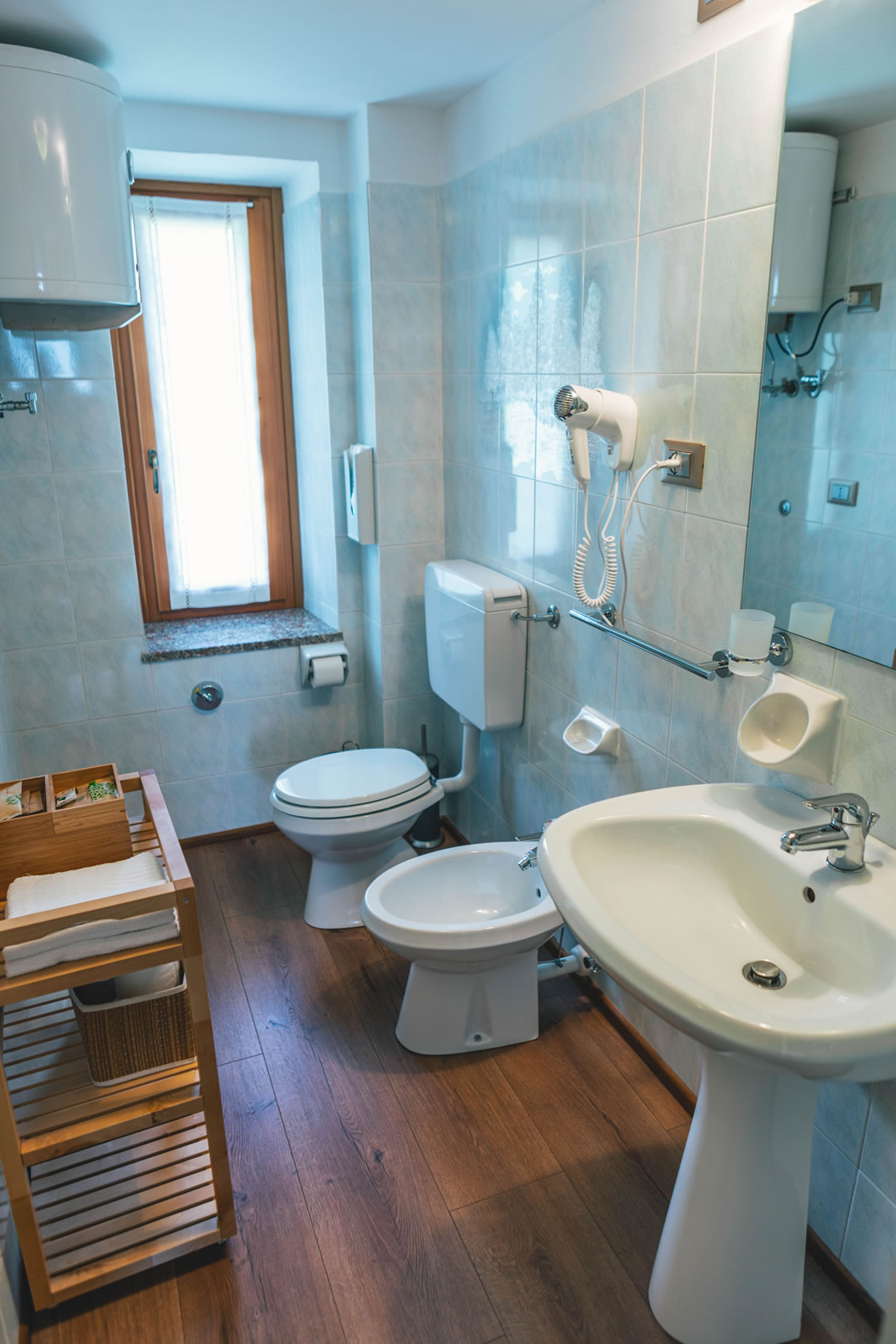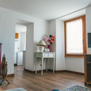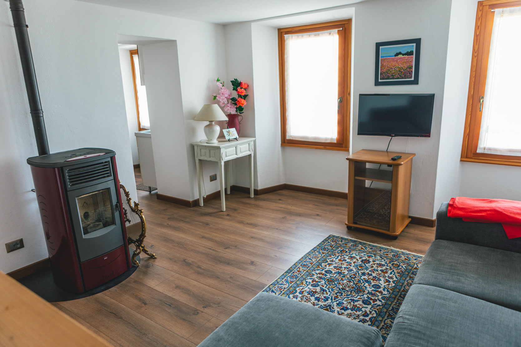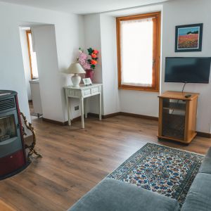 Very bright, beautifully appointed flat on the third floor, consisting of a living room, a breakfast corner, 2 bedrooms (one double and one with two twin beds) and bathroom with shower, bidet, hairdryer, wellness kit, hand and bath towels and shower caddy. Living room with flat screen TV and a very comfortable relaxing sofa. Pellet stove heating, WiFi.