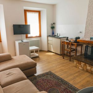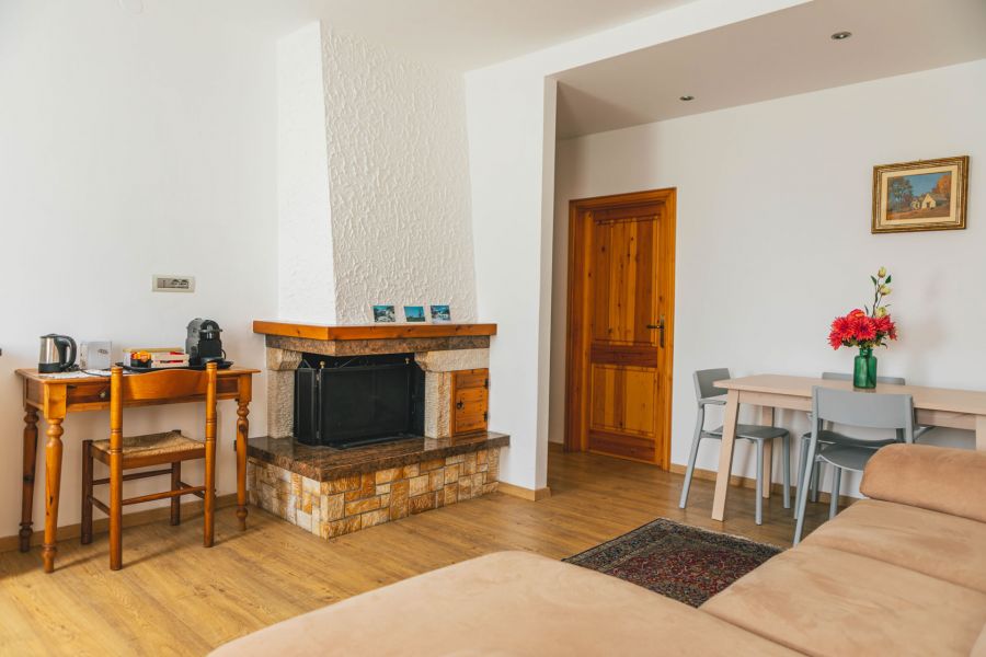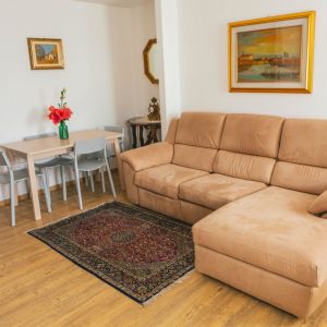 Very bright, beautifully appointed flat on the first floor, consisting of a living room, dining room, 2 double bedrooms and bathroom with shower, bidet, hairdryer, wellness kit, hand and bath towels and shower caddy. Living room with flat screen TV and a very comfortable relaxing sofa. Central heating, WiFi.