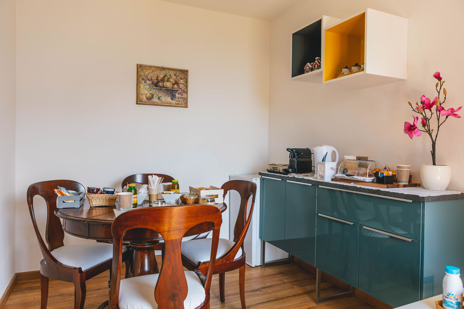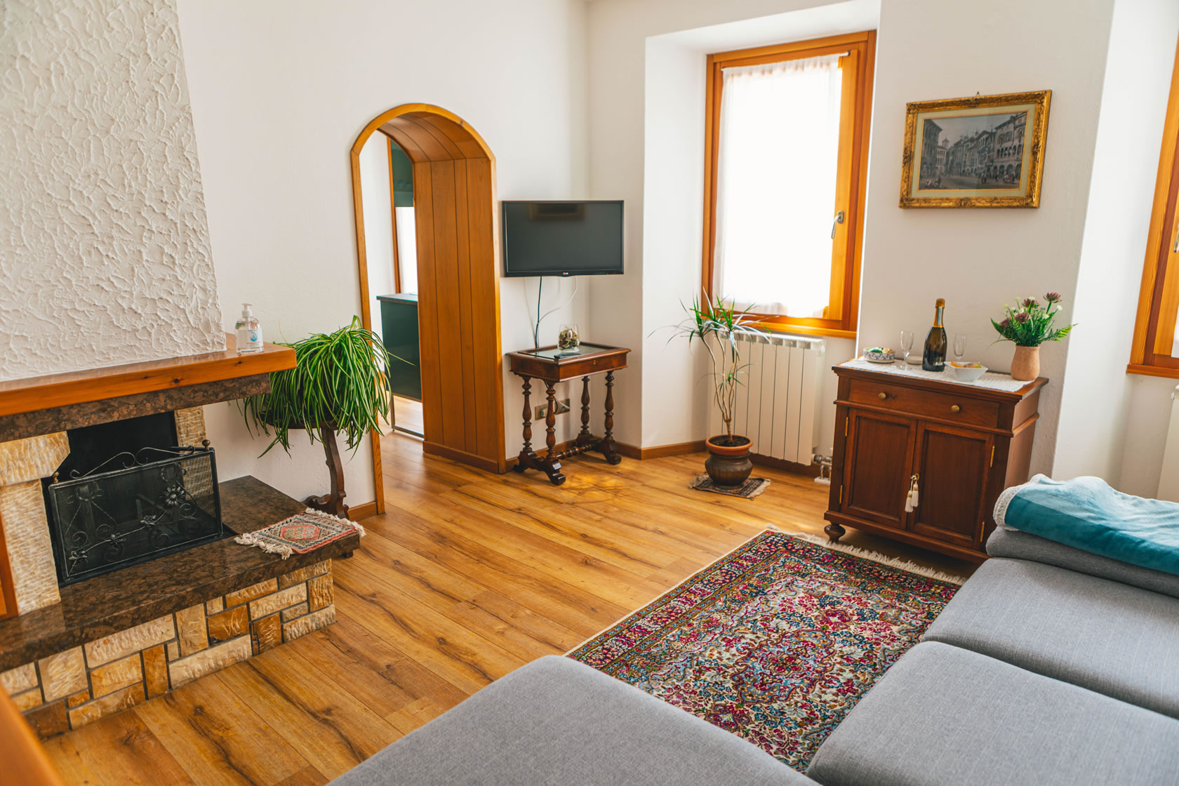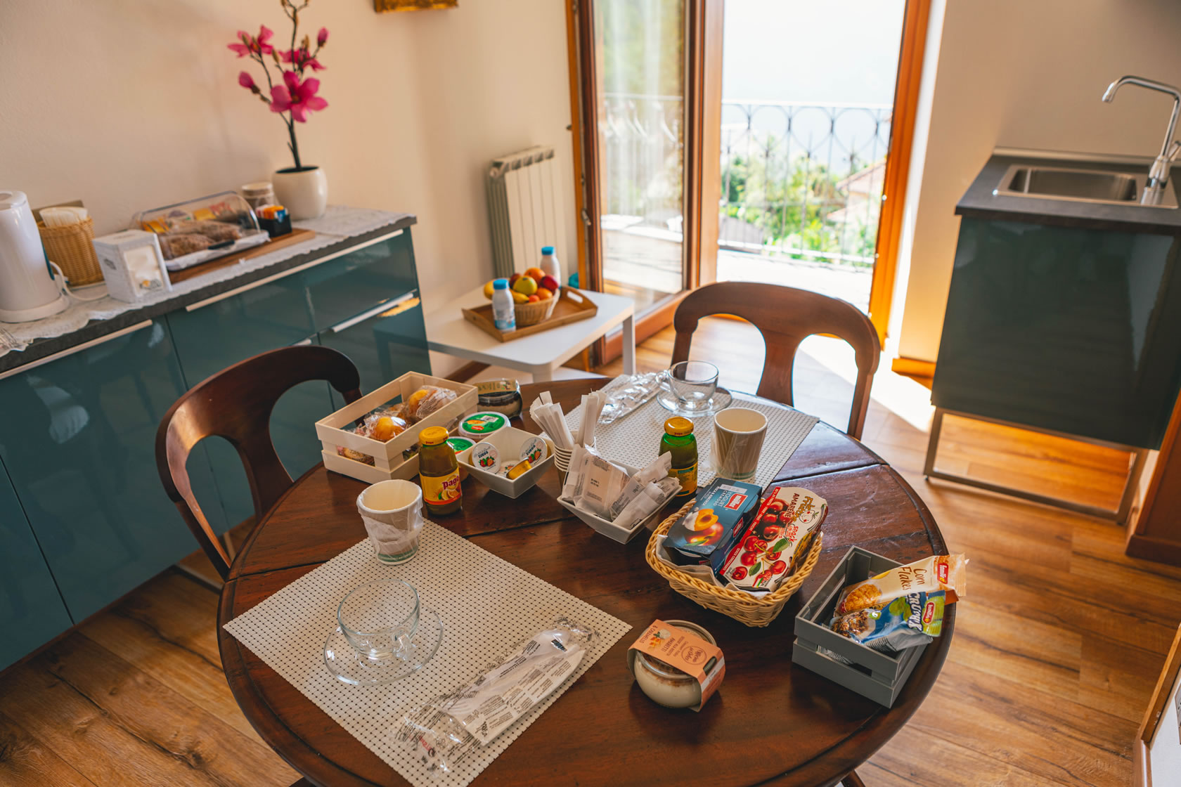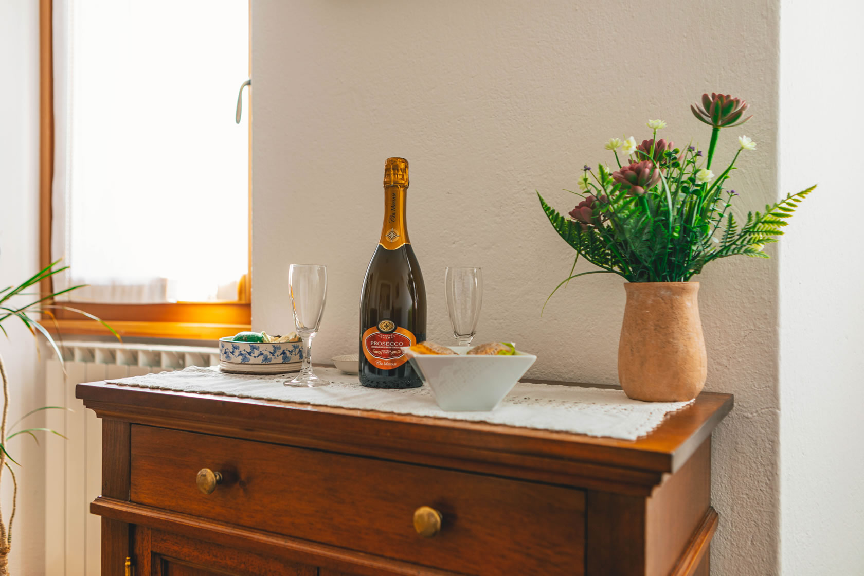 Very bright, beautifully appointed flat on the first floor, consisting of a living room, dining room, 2 double bedrooms and bathroom with shower, bidet, hairdryer, wellness kit, hand and bath towels and shower caddy.